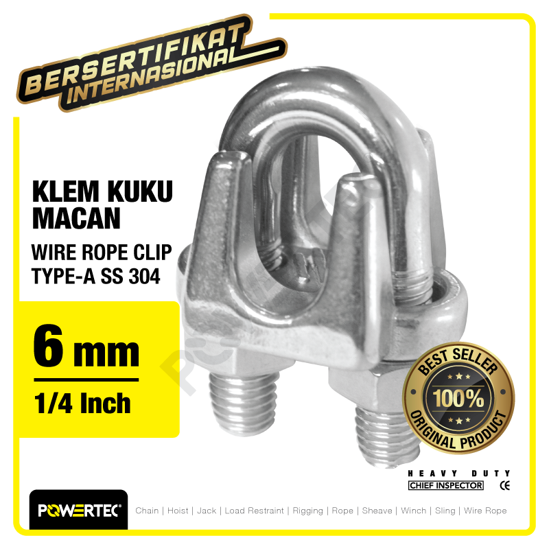POWERTEC® merupakan distributor yang menyediakan Type A Wire Rope Clip atau Klem Sling tipe A beragam ukuran paling lengkap yaitu